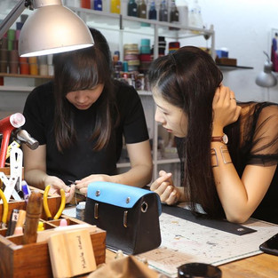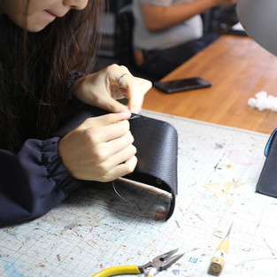 This class takes only 1 day to complete, with a variety of colors to choose from. This bag can change the cover as you like. And this student likes both black and blue, so she chose to make a black bag with cover of both colors! Also she did name stamping as well!